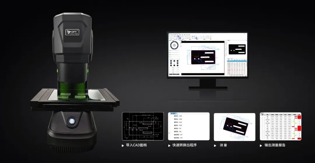 OPT(奥普特)2D尺寸测量传感系统无需编程,支持各类产品CAD图档导入,通过解析图纸里的线条位置信息,快速生成测量程序,相关参数设置便捷,操作简单,易上手,省去选型、调试视觉效果及编写检测程序等环节;而且产品在影像视野范围内可任意方向摆放,无需夹具定位,一键完成测量,快速输出检测报告,仅需数秒就能完成300个部位的测量,大幅度缩短测量工时,为工业制造提供标准化的测量方式。
