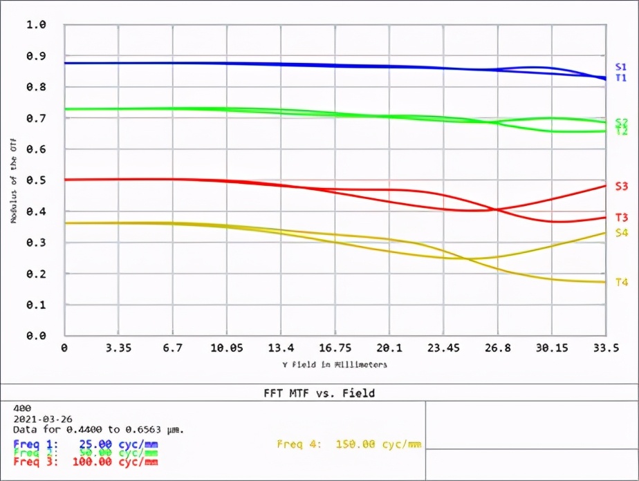 1.51亿相机在PCB检测、锂电池检测、印刷检测及OLED屏检测等行业有着非常大的应用前景。在中高倍率的这类应用中,市面上大多采用原16k线扫镜头搭配该相机,但是对于中小倍率的应用,可选择的镜头方案却不多。OPT推出全新产品1.51亿像素定焦镜头,在全视场φ67mm大靶面下保证3.76μm像元尺寸的高分辨率性能,以定焦镜头的设计方案支持宽工作距离下放大倍率从0X-0.23X连续对焦,焦距60mm的设计有效减小大视野应用的工作距离,为大靶面高精度检测行业在中小倍率的应用中提供一种新的光学解决方案。