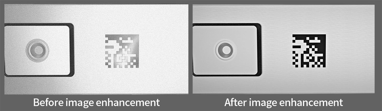 Smart code reader F1 series is equipped with a high-performance processor that supports image enhancement capabilities. It primarily achieves this by applying algorithms such as black level correction, lens shadow correction, noise reduction to process the signals output by the front-end image sensor, thereby comprehensively improving the image quality.