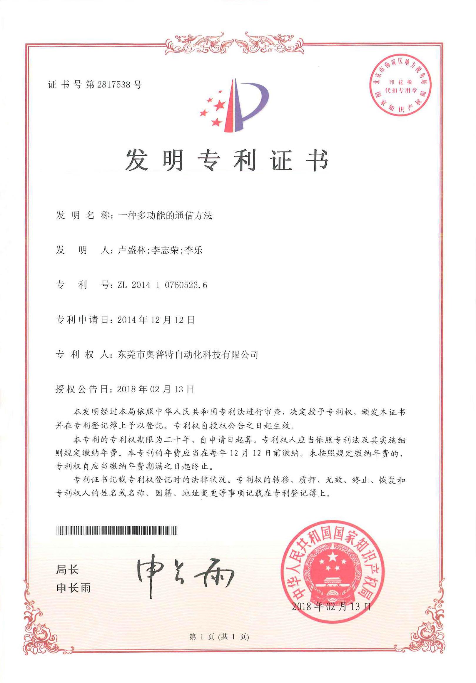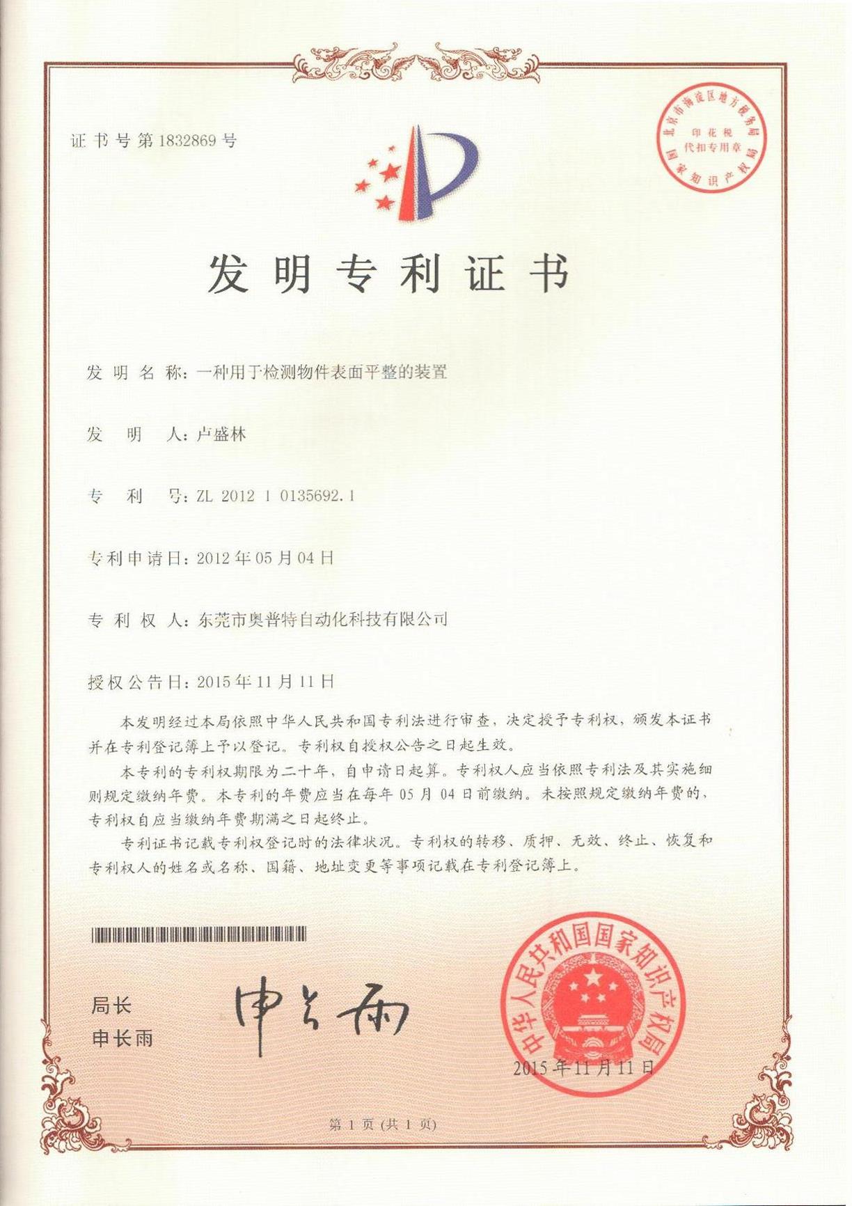 首页 > 公司 > 荣誉资质 > 专利证书