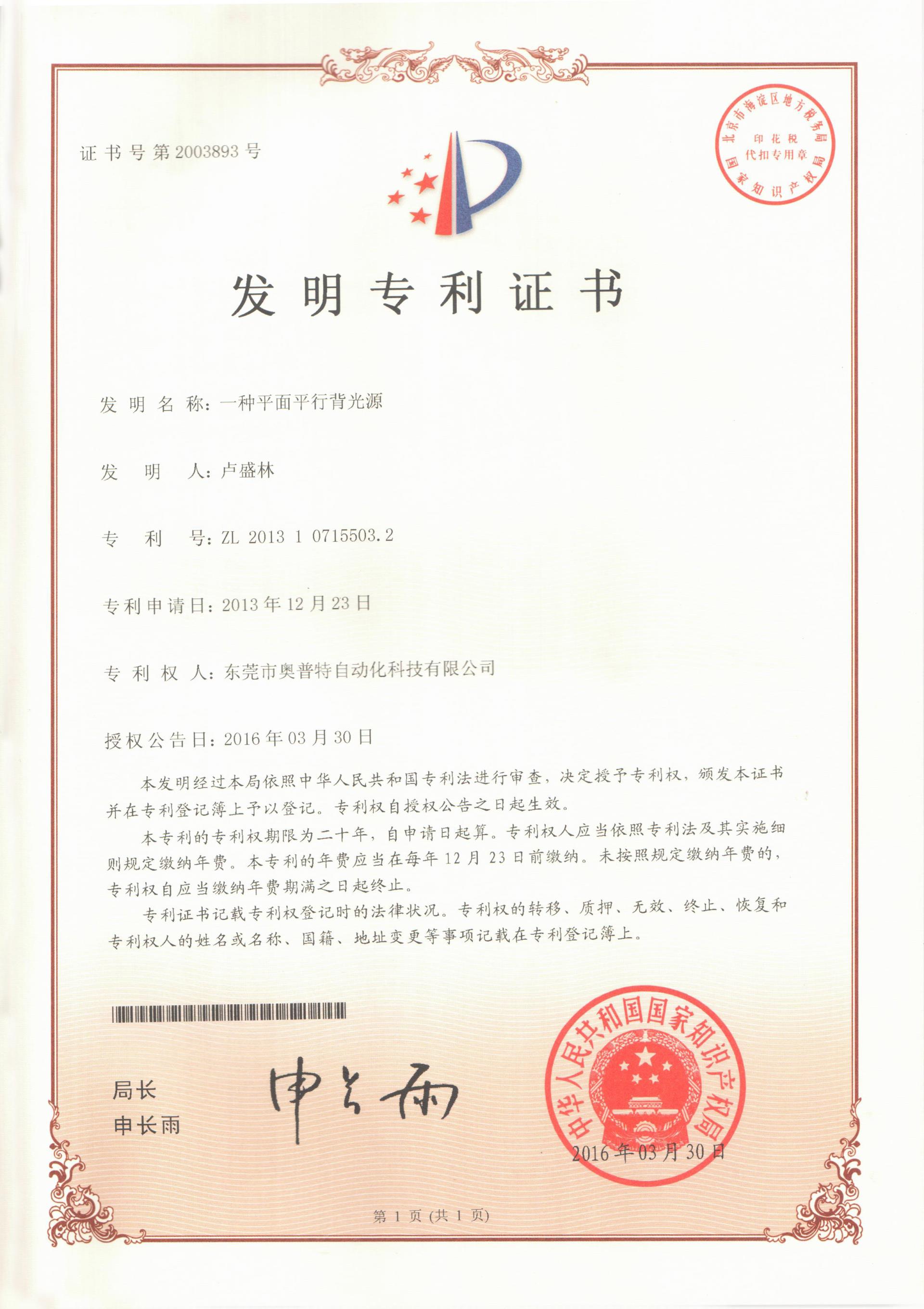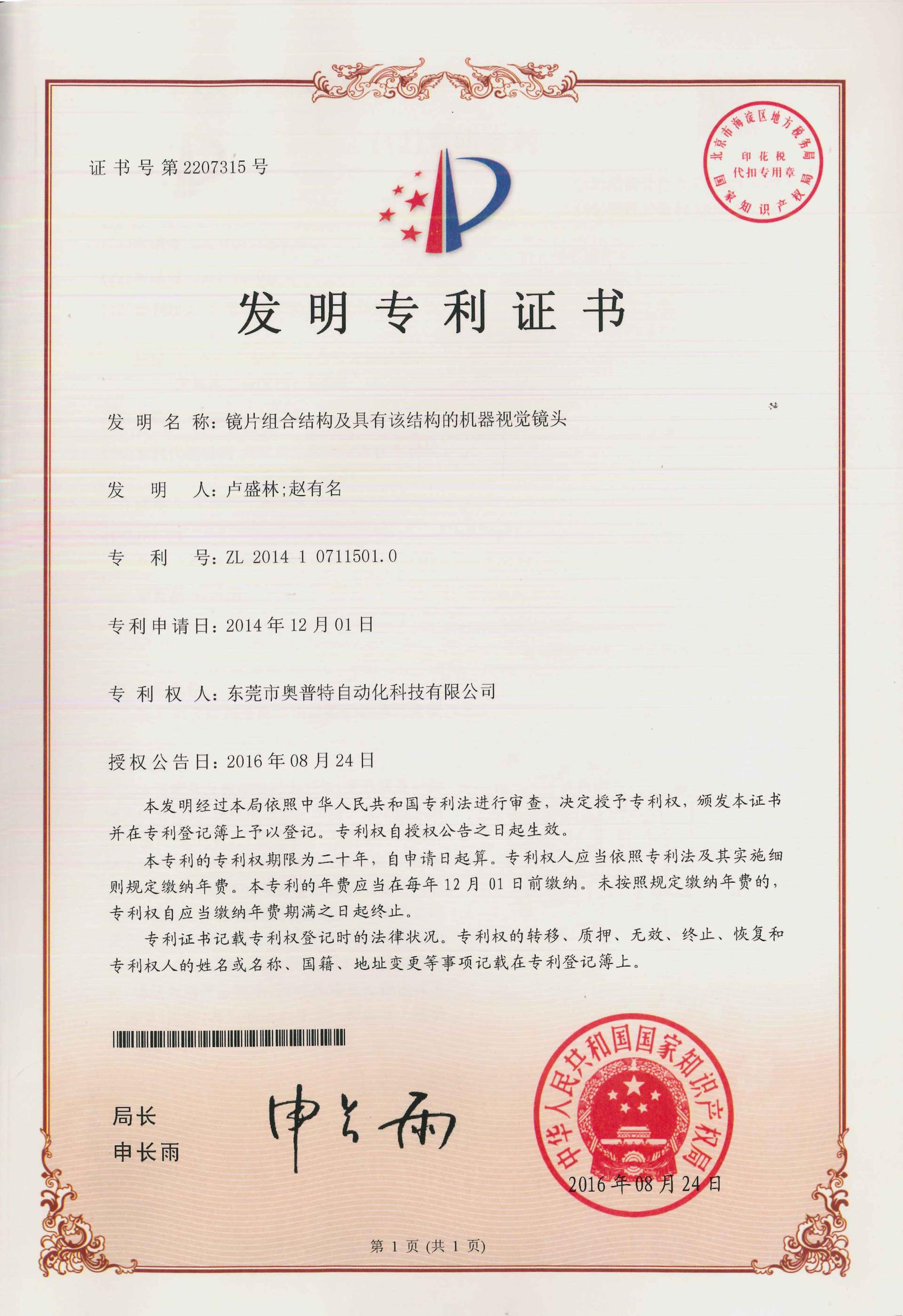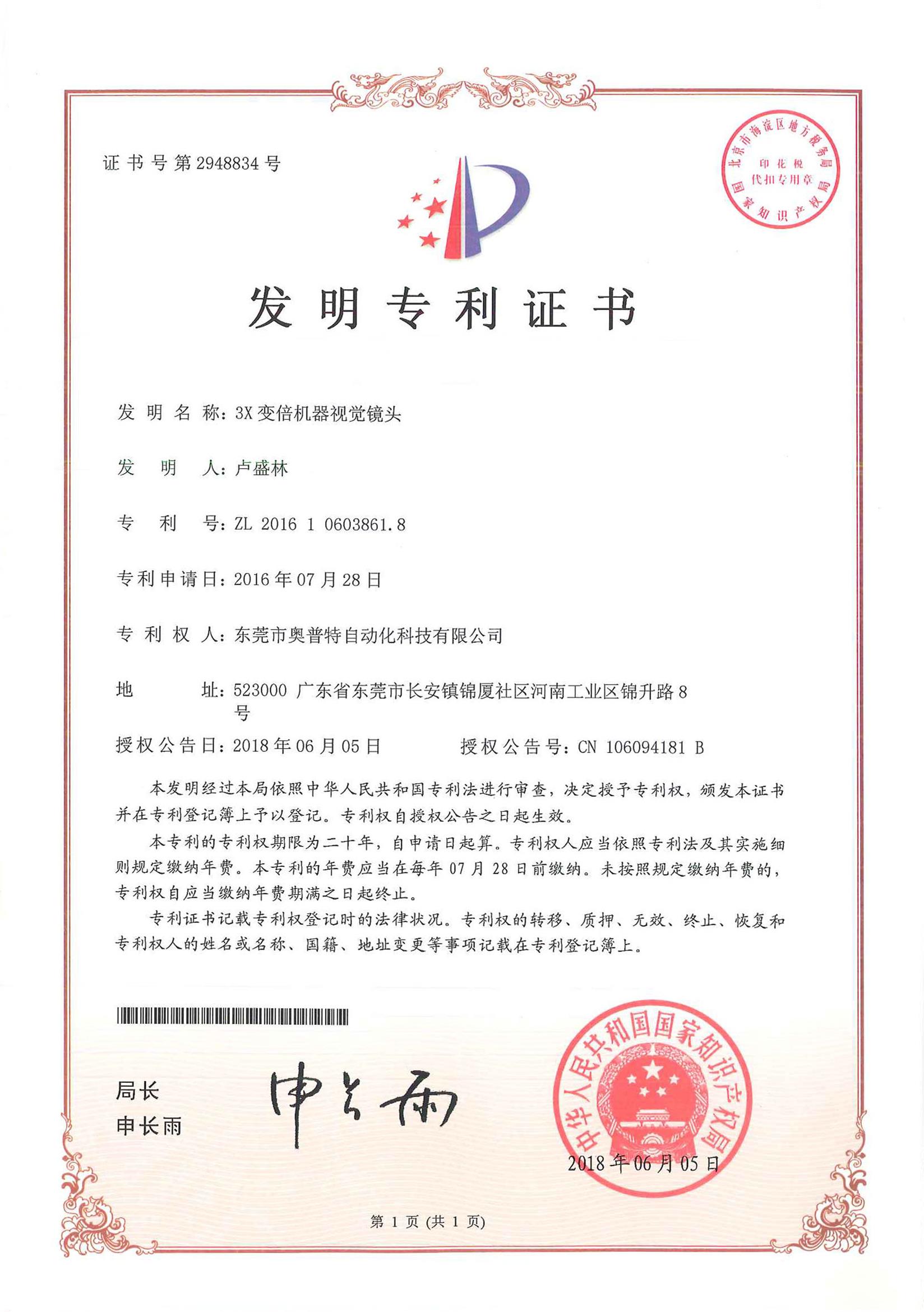 专利证书